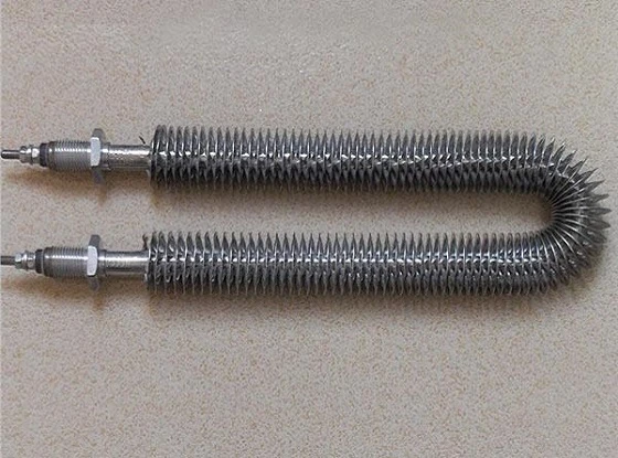 翅片式电加热管,是在普通元件表面缠绕金属散热片,与普通元件相比散热面积扩大了2~3倍,由于元件的长度缩短,使得本身的热损失减小,在相同的功率条件下具有升温快、发热均匀、散热性能好、热效率高、使用寿命长、加热装置体积小,成本低等优点。根据用户要求进行了合理的设计,便于安装。