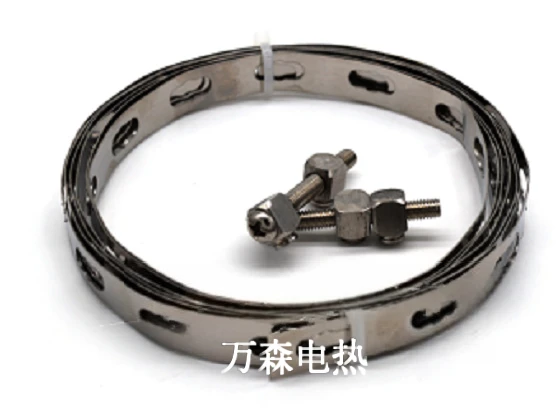 喉卡由不锈钢带和调节螺栓组成。它用于防爆电源接线盒等附件在管道上的固定。钢带可根据管径大小按实际固定长度的1.1倍剪切,再将调节螺栓的前后端分别固定在钢带两头的小孔内,拧紧调节螺栓即可收紧。