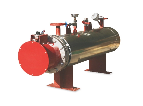 军工电加热器是主要对气体流进行加热的电加热设备。发热元件为不锈钢电加热管,加热器内腔设有多个折流板(导流板),引导气体流向,延长气体在内腔的滞留时间,从而使气体充分加热,使气体加热均匀,提高热交换效率。加热元件不锈钢加热管,是在无缝钢管内装入电热丝,空隙部分填满有良好导热性和绝缘性的氧化镁粉后缩管而成的。当电流通过高温电阻丝的时候,产生的热通过结晶氧化镁粉向加热管表面扩散,再传递到被加热气体中去,以达到加热的目的。